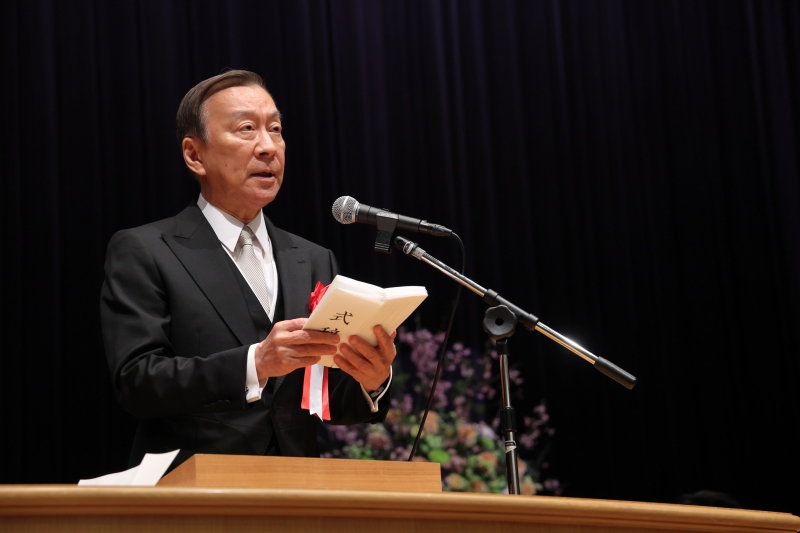 柳谷孝理事長(学校法人明治大学)の式辞では、知識や経験を身につけながらたくさんの「成長点」を持ち、しなやかに強く大きく成長してほしいとのメッセージを新入生に語りました。続いて、上野正雄学長(明治大学)、杉本諭紀PTA会長(明治高等学校・中学校PTA)が祝辞を述べました。
