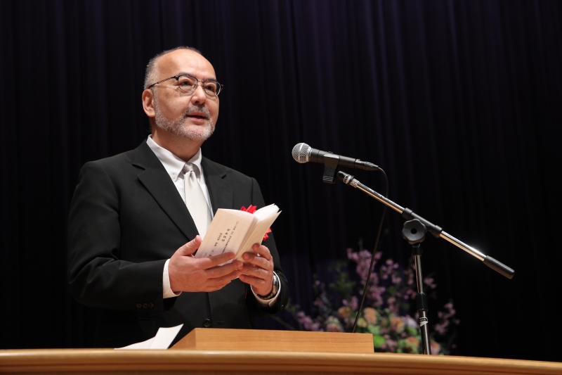 祝辞を述べる上野学長