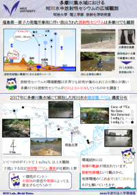 本環境展では、環境中に放出された放射性同位体の多摩川での濃度分布に着目した研究成果を掲載いたしました。