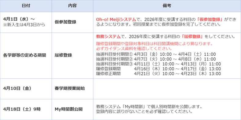 履修登録をしたのにOh-o! Meijiの時間割に表示されません。