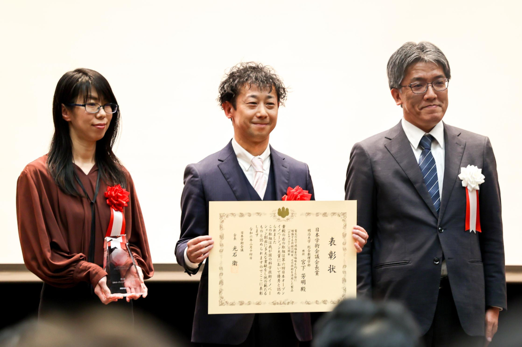 第6回「日本オープンイノベーション大賞」(主催=内閣府他)の表彰式が2月14日、内閣府講堂で行われ、総合数理学部宮下芳明教授とキリンホールディングス(株)による共同研究の取り組みが日本学術会議会長賞を受賞しました。