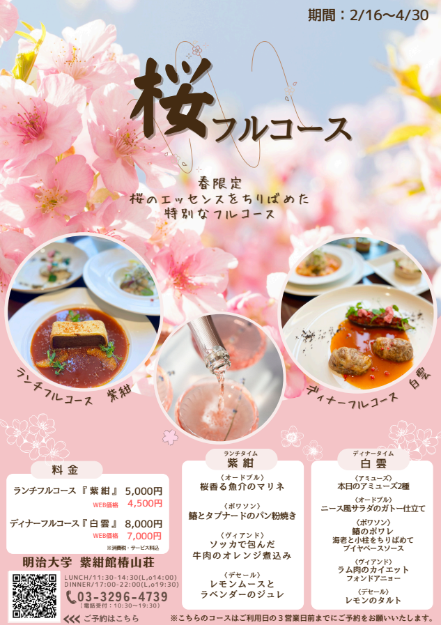 紫紺館椿山荘を身近に感じる料理写真や雰囲気のほか、気軽にスムーズにご予約いただける仕様となっております。