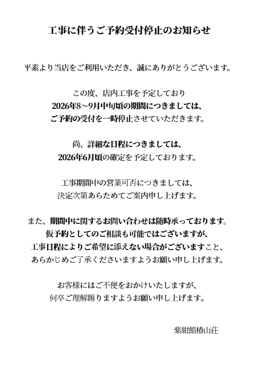 また、ご来館時の椿山荘に関するお問い合わせは、5階受付にてお願い致します。