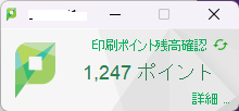 印刷ポイントは印刷した用紙の「枚数」でカウントされます。 (例)Word2ページ分の印刷をA4モノクロ両面印刷した場合、印刷して出力した用紙の枚数はA4が1枚になるので、使用したポイント数は「1」となります。