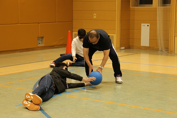 実際に参加者に、パラリンピック競技(ゴールボール,ボッチャ)を