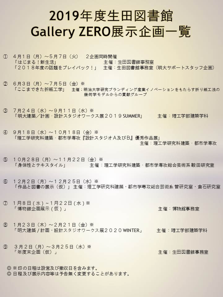 開催期間:2019年04月01日~2019年05月07日明治大学 生田図書館事務室