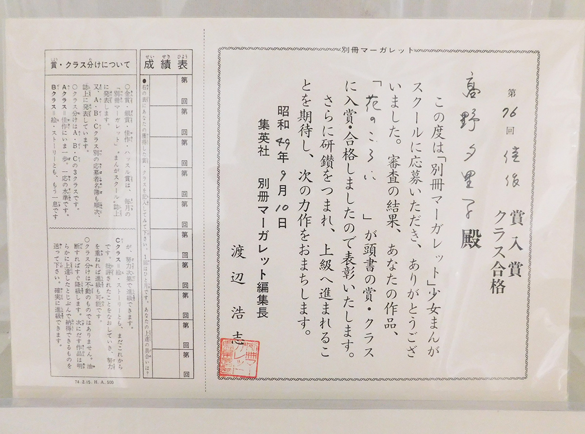 『別冊マーガレット』1972年11月号/第53回「別マまんがスクール」Aクラス