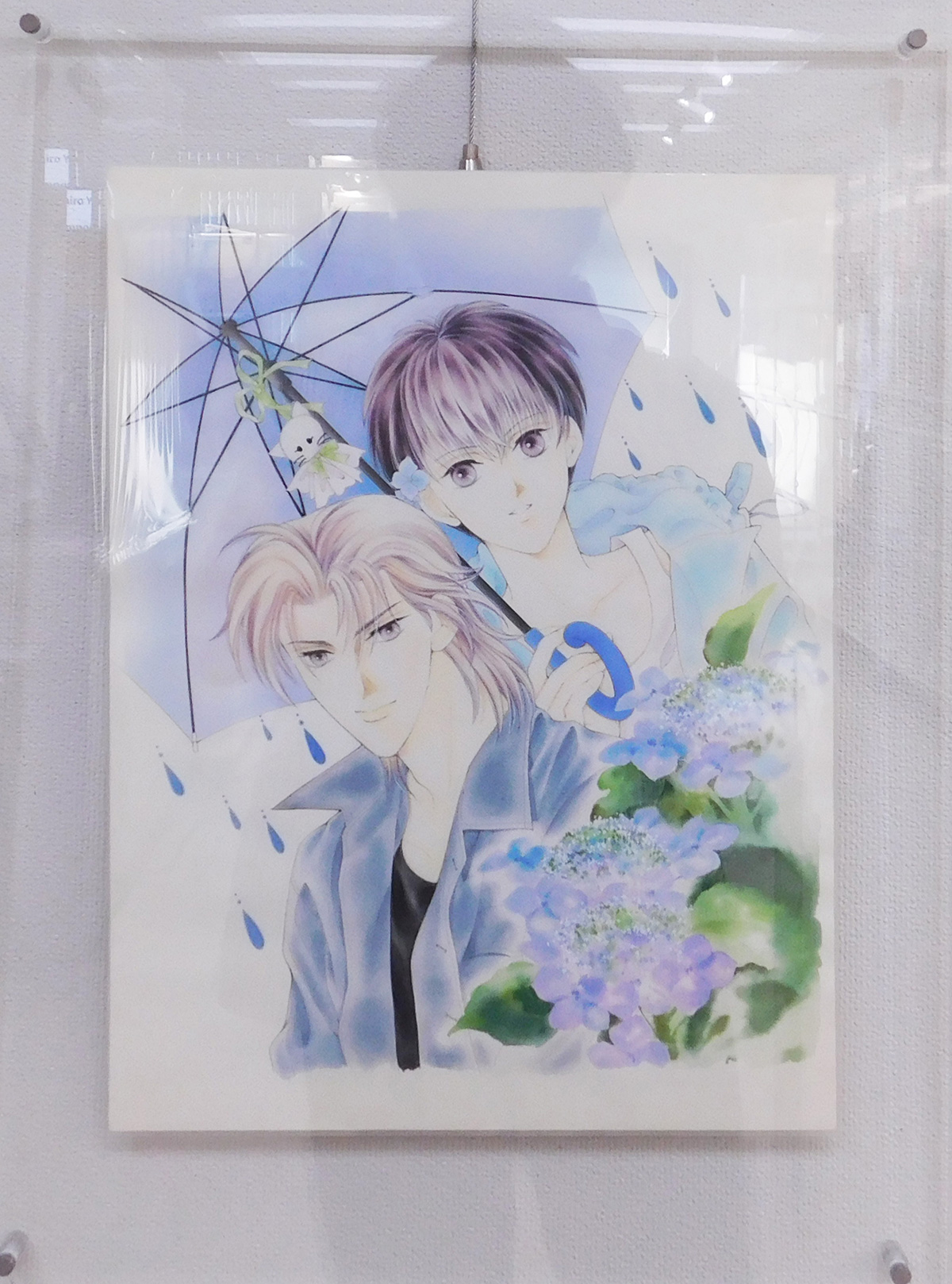 *1期にBL作品最初の単行本「僕達のはじまり」とシリーズ2作目「僕達の熱い夏」、2期に3作目「僕達の恋愛論」、3期に4作目「僕達の長い夜」、5作目「僕達の仮面劇」のカバー用イラストをそれぞれ展示