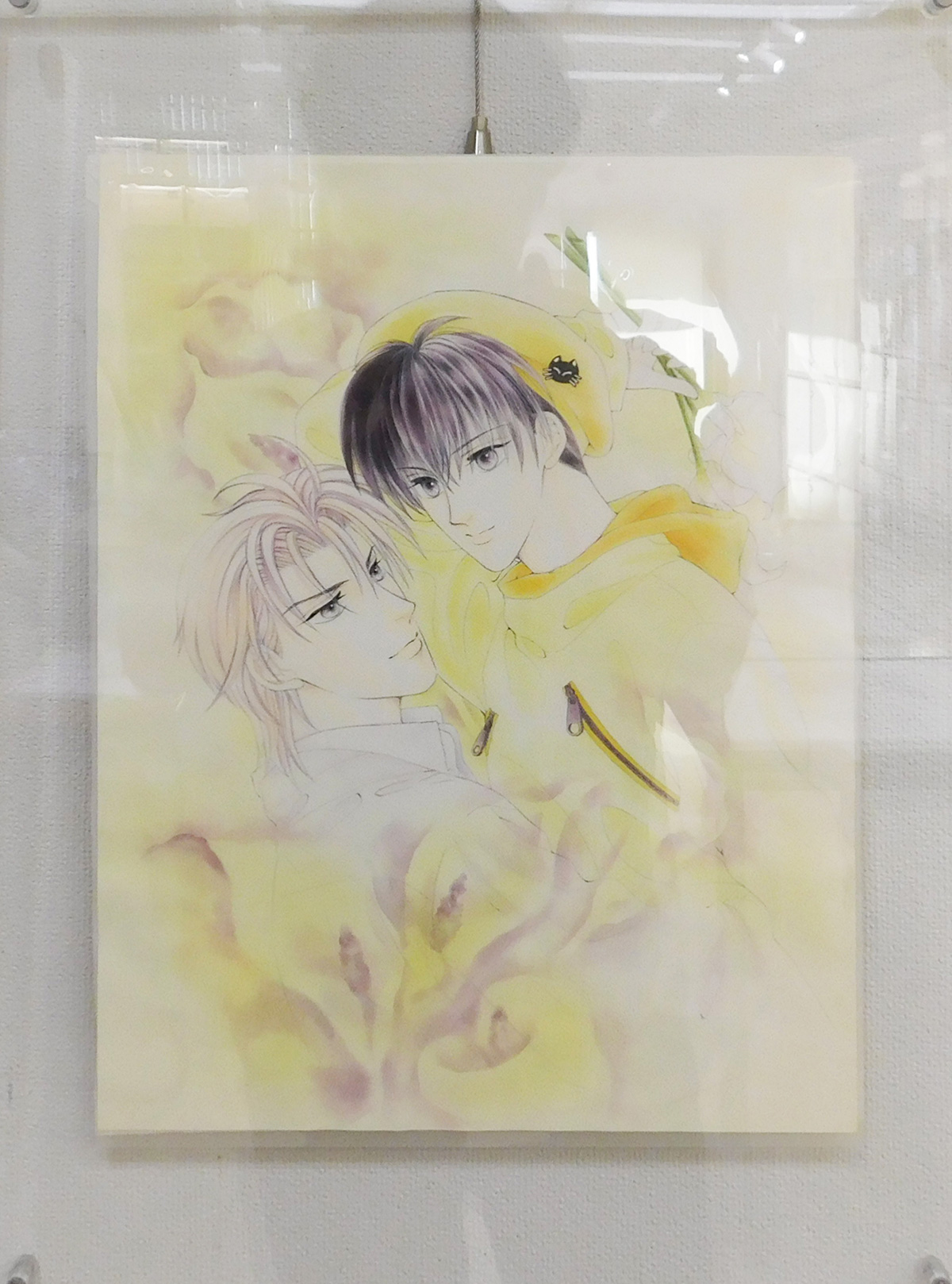 本展では、デビュー以前の貴重な作品や、BLに移行してからの美しいカラー原画を紹介しつつその道のりをたどります。もちろん少女誌時代のカラーイラストもお届けします。