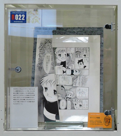 R027-029には、三原作品に登場する書物に関係したシーンの原画と、書物そのものとを同時に展示した。展示されている本の多くは、三原順自身が遺したものである。