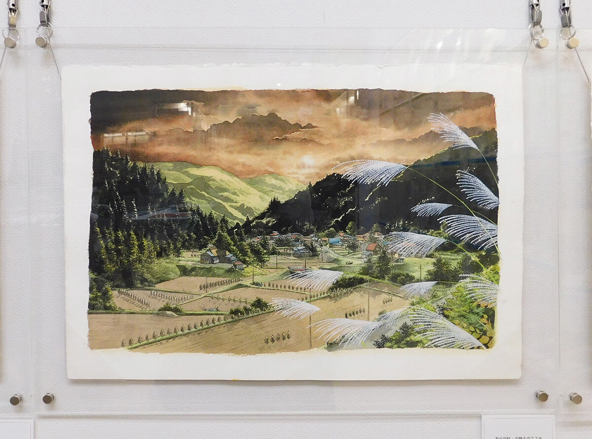 ケースNo.28・29で展示中の原画は、平成版3作目の「鮎の夏2002」よりのものである。本作では、三平の指導でユリッペが鮎釣りに挑み、ふたりの甘酸っぱい関係も描かれている。