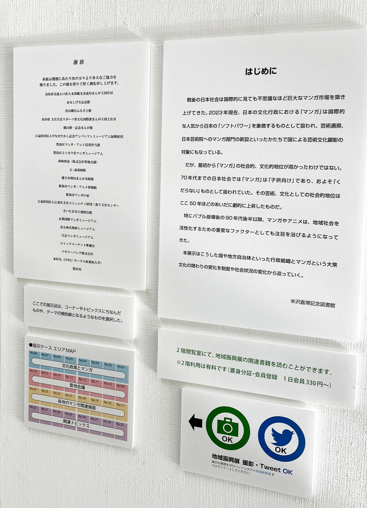 本展示はこうした国や地方自治体といった行政組織とマンガという大衆文化の関わりの変化を制度や社会状況の変化から追っていく。