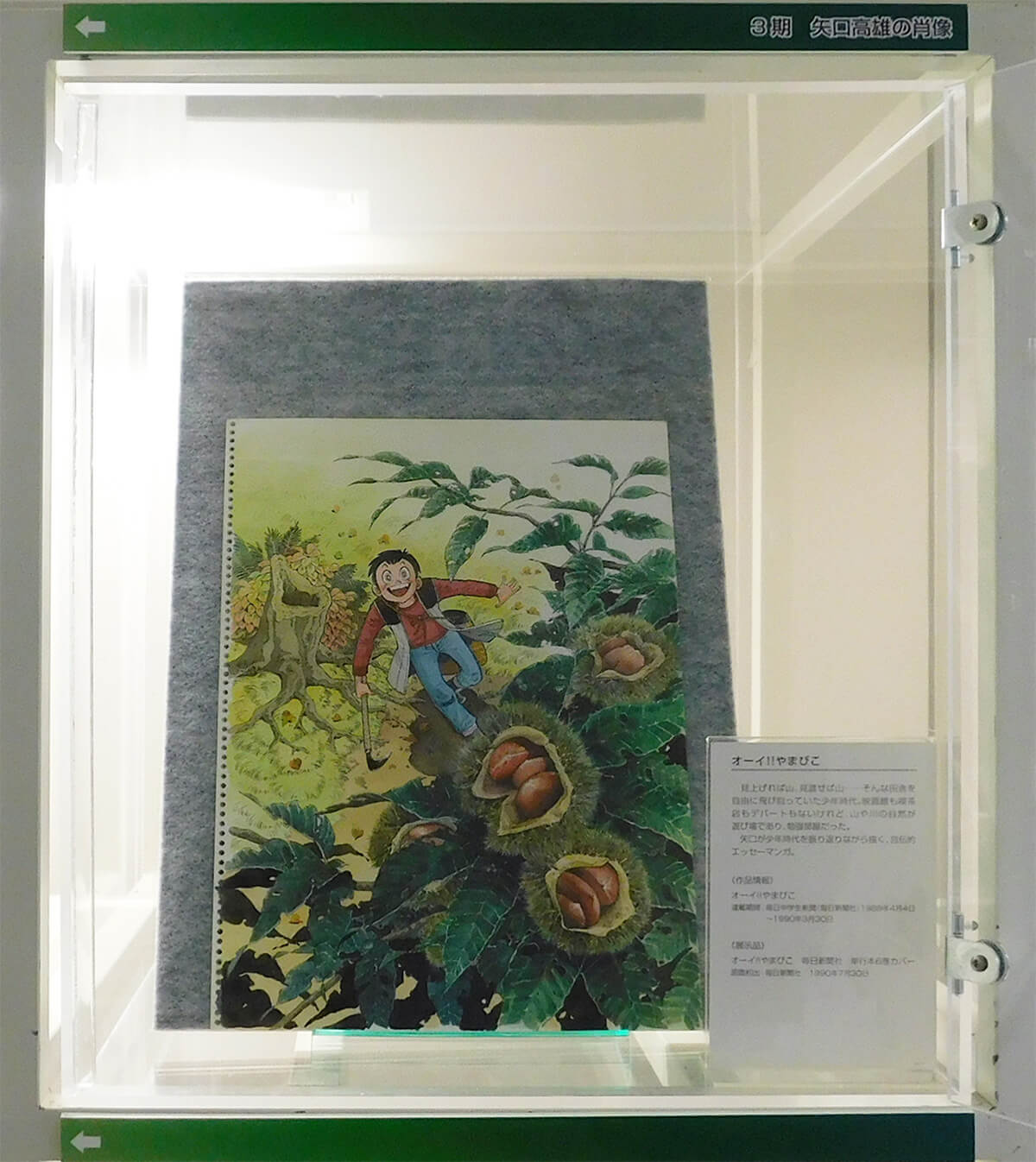 3期には「オーイ!!やまびこ」など自伝的作品を通して作家像を探ります。4期には矢口のふるさとへのまなざしが表れた作品を取り上げます。