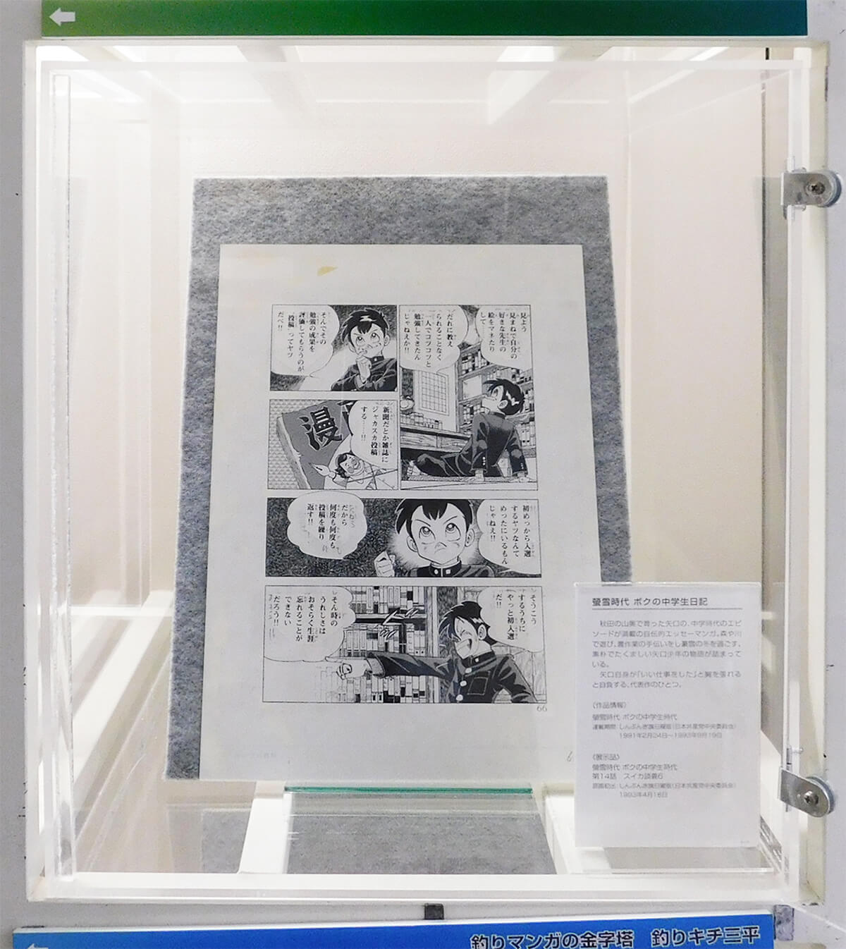 代表作「釣りキチ三平」の名シーン原画は、全会期ご覧いただけます。