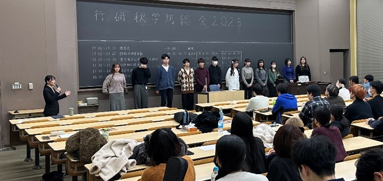 秋学期総会が11月8日(土)、駿河台キャンパスリバティタワーで開催され、1・2年生の行研生を中心に120名余りが参加しました。