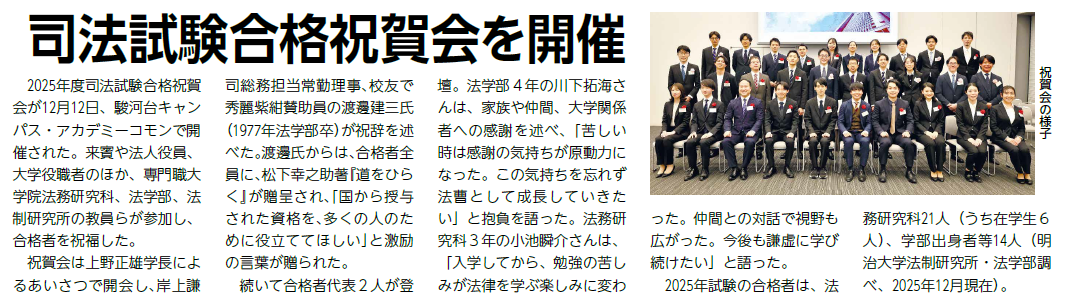 本学学部出身で他大学法科大学院在学中・修了または予備試験合格を含めた司法試験合格者数