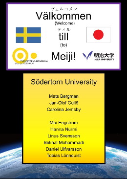中野キャンパスでは、国際交流学生委員会の学生たちがキャンパスおよび中野の町を案内しました。また訪問に先立ち、国際日本学部の学生たちが作成したによりスウェーデンに関するポスターを展示し、セーデルトーンの学生たちに大いに喜ばれました。