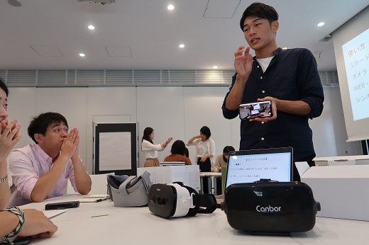 ICT体験では、ドローン、プログラミング、タブレット、VRの4つの機器を体験しました。私自身、はプログラミングを除くほかのICT機器を、誰かが使っているところは見たことあるけど自分で使ったことがありませんでした。しかし、実際に使ってみると、「楽しい!」「これは○○に活用できそうだな」と自分事として捉えることができました。まさにICTとの距離が縮まった瞬間でした。