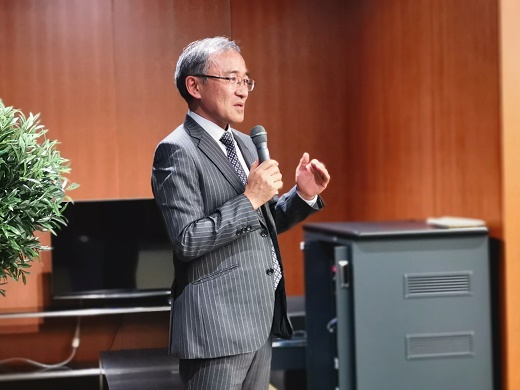 その後、寧琦院長によるプレゼンテーションが行われ、北京大学外国語学院の厚い伝統や多様な研究・教育に関する紹介があり、会場には国際日本学部教員の他、多くの大学院院生が来場し、熱心に耳を傾けていました。また、プレゼンテーションに続き懇親会が開催され、北京大学外国語学院の教員と大学院生が懇談する場面が見られるなど、和やかな雰囲気に包まれました。懇親会のさいごに田中牧郎国際日本学研究科長より「これまで、明治大学マンガ図書館北京大学閲覧室を基盤とするポップカルチャー研究領域での交流が行われてきたが、今後は、より幅広い研究領域での交流を盛んにし、明治大学と北京大学との関係がますます深まっていくことを期待しています。」とあいさつがありました。両校の今後のさらなる学術交流が期待されます。