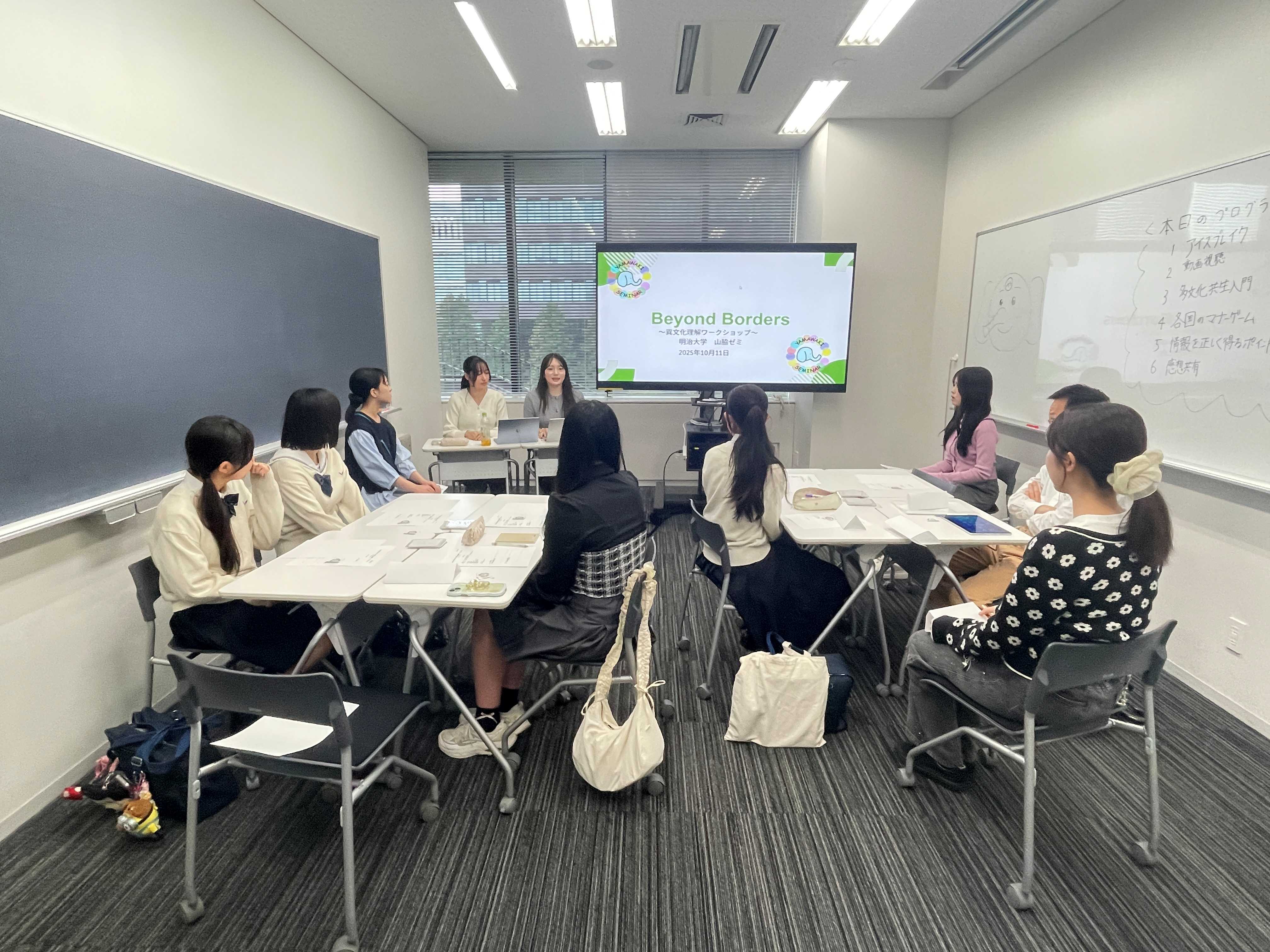 国際日本学部の山脇ゼミの3年生6名が、2025年10月11日に「Beyond Borders~異文化理解ワークショップ~」を実施し、高校生を中心に7名の方にご参加いただきました。