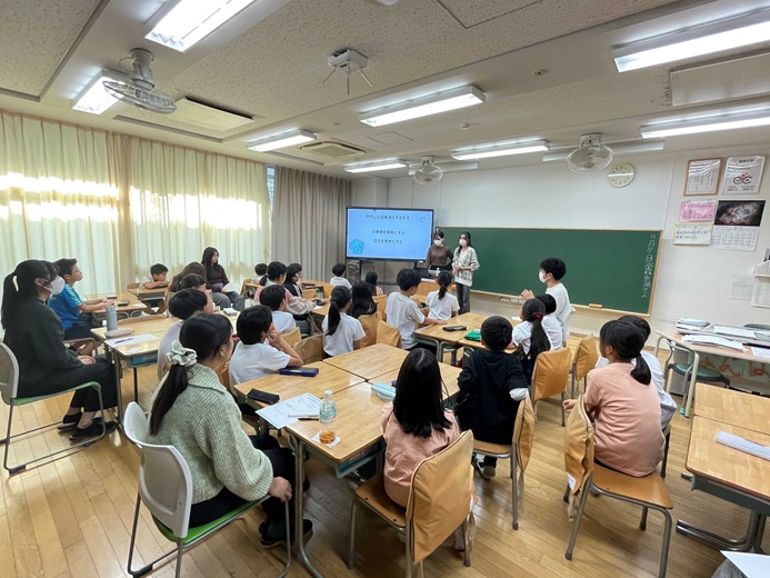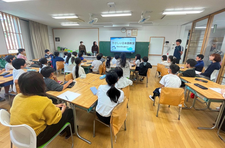 国際日本学部山脇ゼミは2025年11月7日に、杉並区立新泉和泉小学校の4年生を対象にやさしい日本語ワークショップを実施しました。4年生は5クラスあり、山脇ゼミからは山脇啓造教授と3年生5名、4年生5名が参加しました。