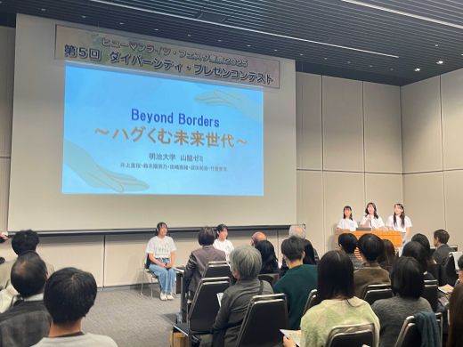 2025年12月6日に、東京都主催の第5回ダイバーシティ・プレゼンコンテストが東京国際フォーラムで開催され、明治大学国際日本学部山脇ゼミが最優秀賞を受賞しました。大会のテーマは「ダイバーシティ&インクルージョン—大学生が考える東京の未来—」でした。法政大学(松尾知明ゼミ)、明治大学(山脇啓造ゼミ)、東京都立大学(丹野清人ゼミ)、中央大学(中川康弘ゼミ)、東京女子大学(松尾慎研究室・学生有志)の5つの大学が出場しました(当日発表順)。山脇ゼミは5年連続最優秀賞受賞を達成しました。