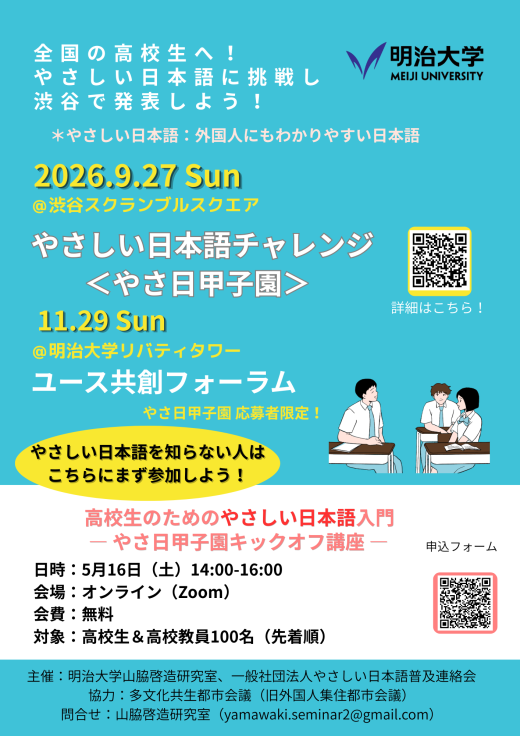 主催:明治大学山脇啓造研究室、一般社団法人やさしい日本語普及連絡会
