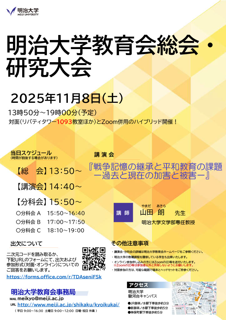 2025年度(第18回)明治大学教育会総会・研究大会の御案内