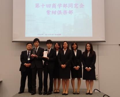 第10回商学部同窓会「商学部紫紺倶楽部」は、13時からの現役商学部生によるプレゼンテーション大会で幕を開けました。今回のプレゼンテーション大会は、テーマが自由の「一般部門」に加え、東京オリンピック・パラリンピック時に商学部生が国際貢献できる企画を募集した「特別部門」が設けられ、両部門合わせて26グループが参加。学生たちは当日リバティタワーの4教室に分かれ、日ごろの研究成果を披露しました。商学部教員による審査の結果、以下のグループが優秀賞を獲得しました。