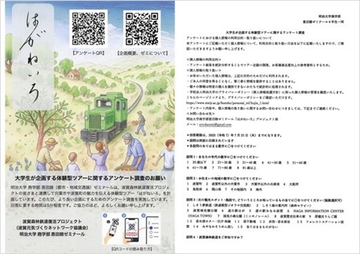 商学部の恩田睦ゼミナール(4年生)は兵庫県宍粟市波賀町にて、波賀元気づくりネットワーク協議会の皆様などと共に10/11(土)、10/12(日)に「はがねいろ」と題した体験型ツアー企画を行った。これは同町で復活した波賀森林鉄道を活用した地域活性化の一環として、森林鉄道の乗車と町の魅力を体感できるプログラムを組み合わせたものである。当日は約70名の参加者の皆様に、宍粟の魅力や森林鉄道の物語を伝えた。また10/25(土)には、「第3回全国森林鉄道サミット in しそう波賀」に登壇し、同企画の成果とそれを踏まえた波賀森林鉄道の活用の方向性について考察を発表した。ゼミ学習の知見と現地の経験を掛け合わせたこの発表は、会場の皆さまから高い評価をいただいた。
