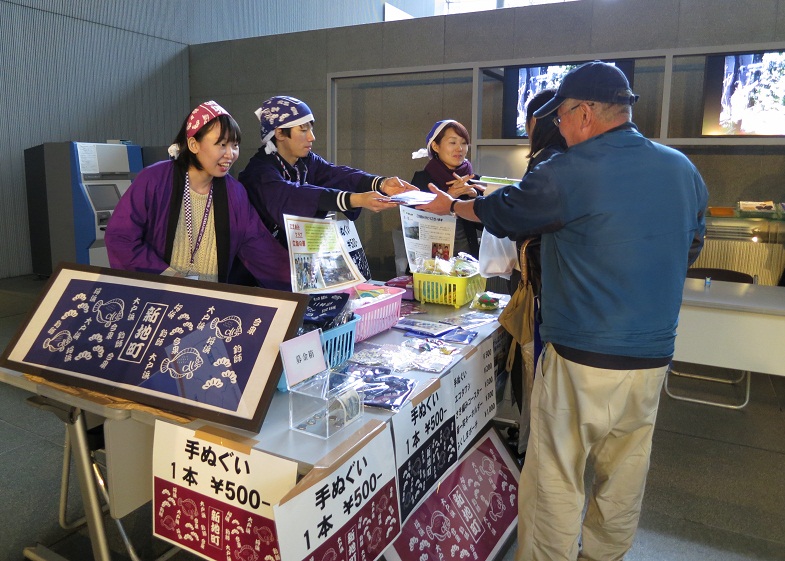 また、本学が協定を結んでいる岩手県大船渡市及び福島県新地町の物産販売を行いました。新地町からは現地の方が応援に駆けつけて下さいました。