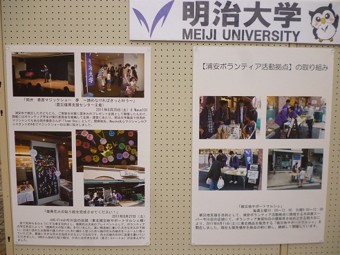 校友会浦安地域支部と震災復興支援センターが明治大学のブースを出展しました。