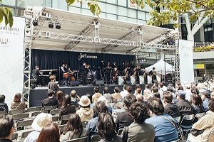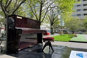 【イベント主催】 駿河台キャンパス・アカデミーコモン前の広場にピアノを設置し、ストリートピアノのイベント「MU STREET PARK」を開催しています。明治大学の学生はもちろん近隣にお住まいの方、企業に勤めている方など自由にピアノを演奏することができます。本イベントは「MU STREET PARK実行委員」の学生が企画・運営を行っており、本学学生部が多様性や持続可能な社会を目指す学生の自主的な活動を支援する「M-Naviプロジェクト」の企画として実現したもので今回で4回目の開催となります。