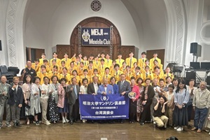 【国際交流】マンドリン俱楽部は創部103年の歴史を持つ本学公認サークルで、全国の校友会支部が主催する演奏会を年間約30回行っています。今回は校友会本部および同台湾支部の協力の下、台北市の中油國光会議ホール、国立台湾師範大学で公演を行いました。テレサ・テンメドレーや津軽組曲などの日本の名曲に加え、ラテン音楽やイタリア民謡など多彩な曲目を披露。アンコール演奏も行われ、会場は大きな拍手に包まれました。