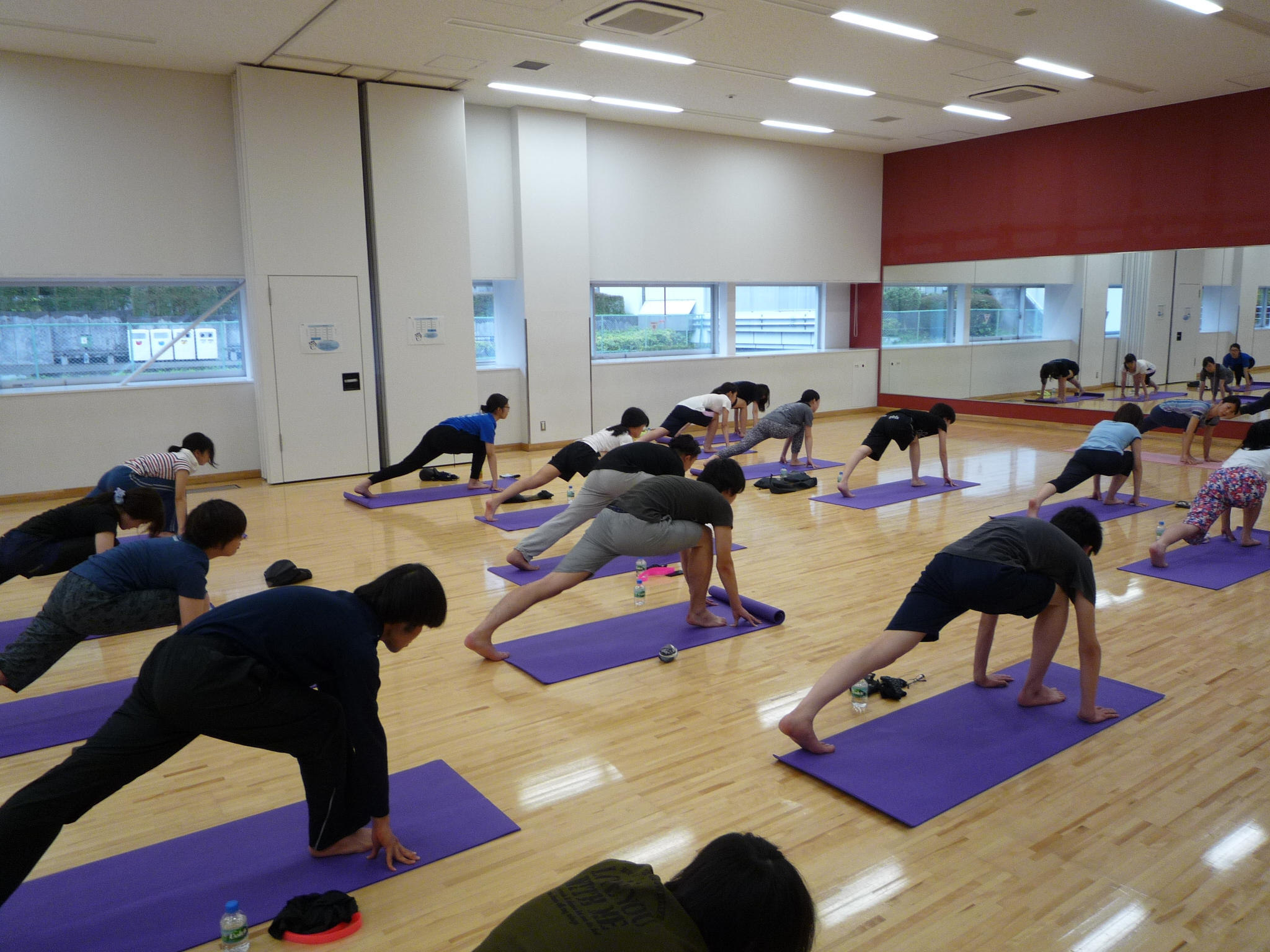 Yoga体験では、ヨガの呼吸法から始まり、ヨガのポーズ、呼吸と動きを合わせる動作を行いました。