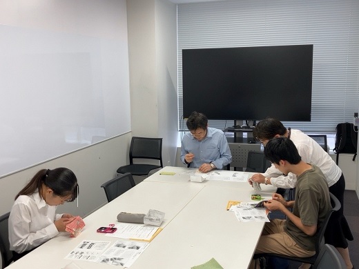 後半ではイベント前半で学んだことを活かし、実際に裁縫キットを用いてカードケースの制作とボタン付けを行いました。