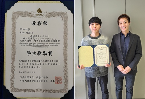 理工学研究科応用化学専攻博士前期課程2年の木村昭瑛さん(金子弘昌研究室)が、京都大学吉田キャンパスで開催された化学工学会第91年会において、学生奨励賞を受賞しました。