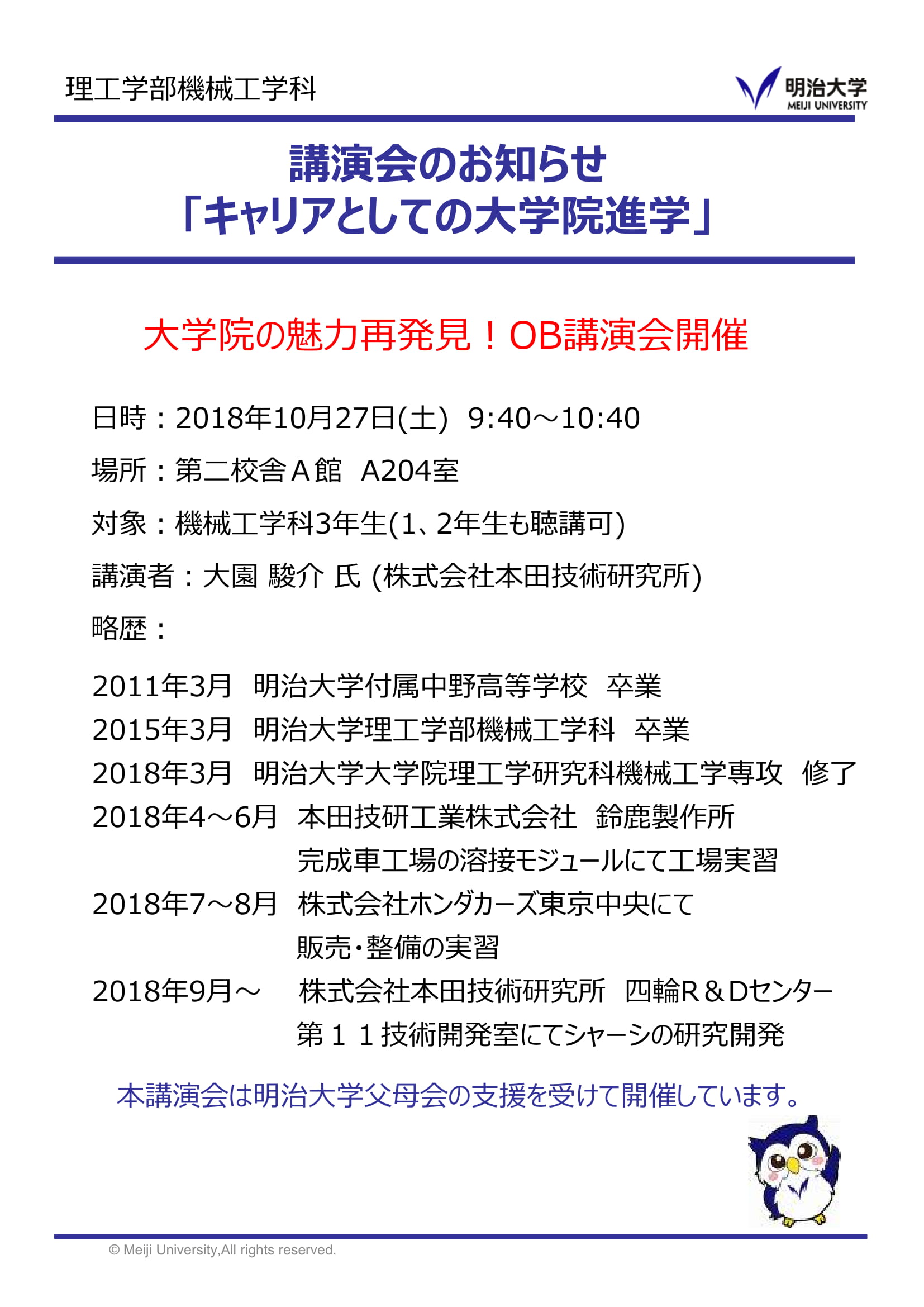 開催期間:2018年10月27日明治大学 理工学部事務室